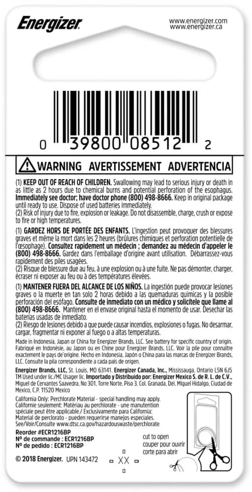- Cell size: 1216; IEC: CR1216; Type: Lithium Coin; Volt: 3