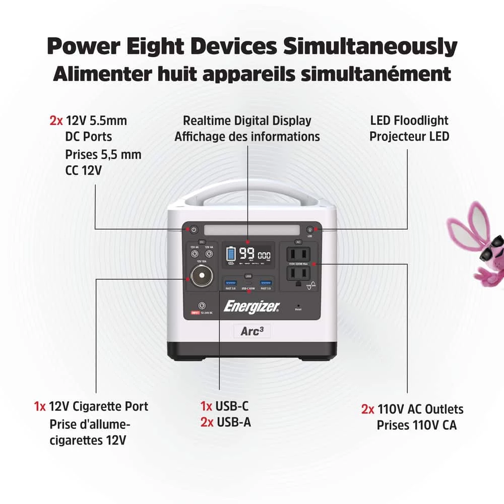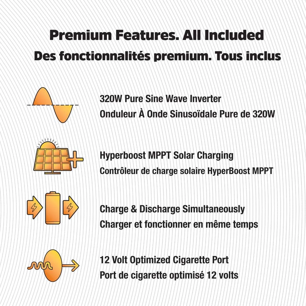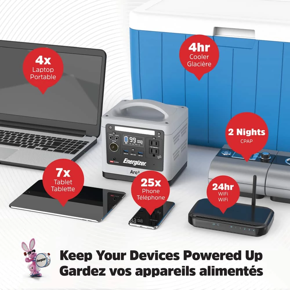 - 298Wh (85,000 mAh) charges your smartphone 21 times, laptop 4 times, run your CPAP, TV and more
