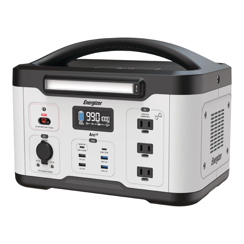 - Energizer Arc12 Lithium-Ion Portable Power Station features 1000 W of pure sine wave AC power shared over 3 outlets