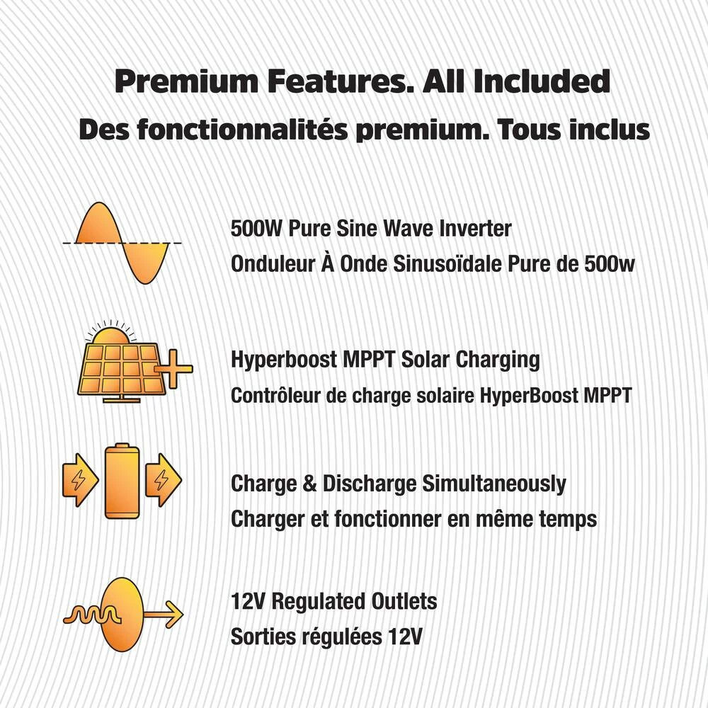 - Continuous AC Power Output (Watts): 500 W