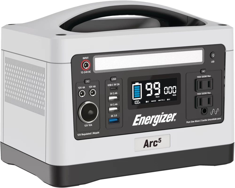 - Energizer Arc5 Lithium-Ion Portable 500W Power Station uses pure sine wave power to provide 500W of power safe for medical equipment and smart devices