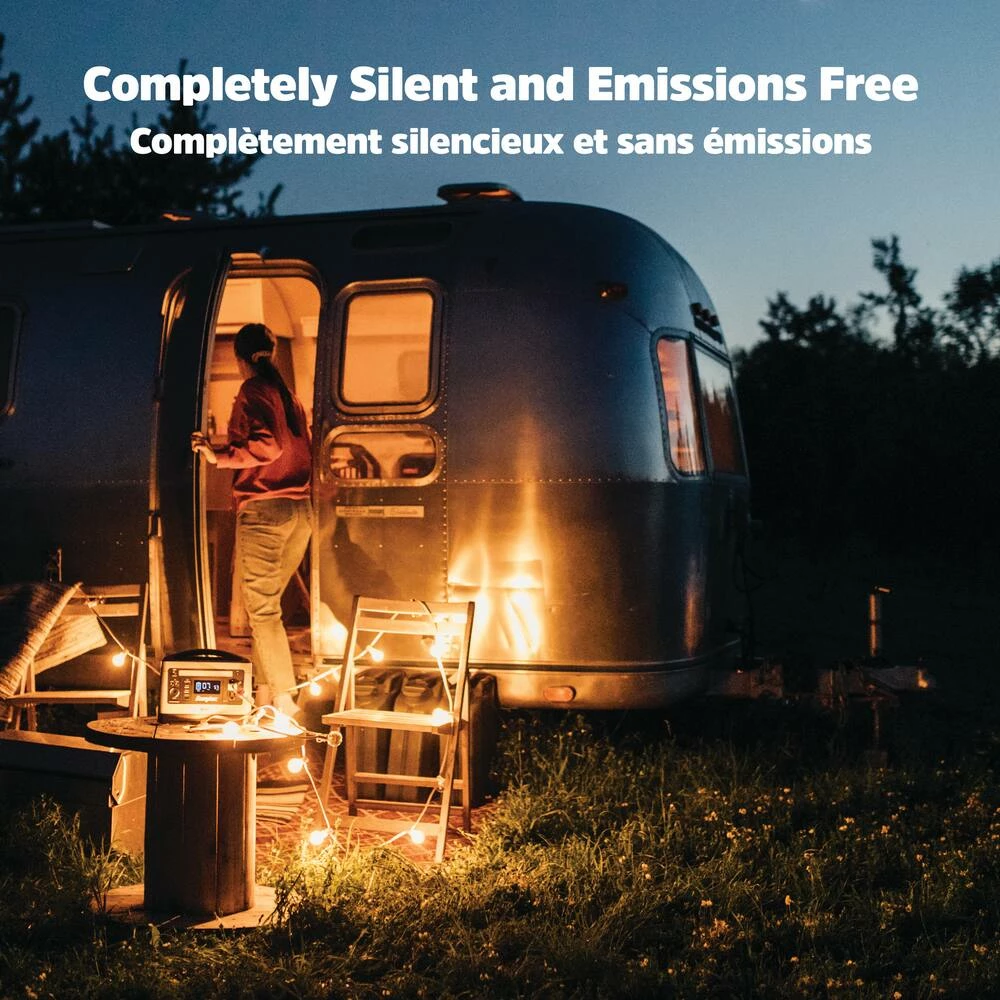- Completely silent, no harmful fumes, and requires no fuel, unlike gas powered generators
