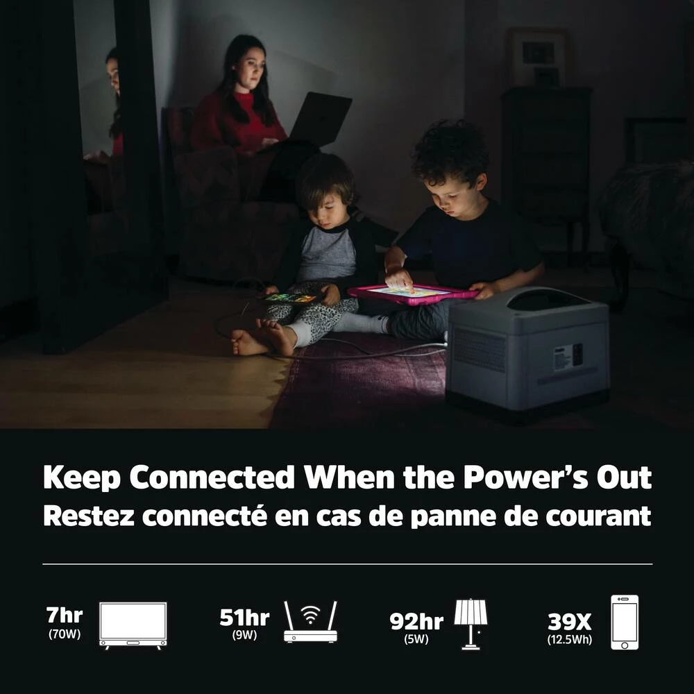 - 540Wh (150,000 mAh) charges your smartphone 39 nights, laptop 7 times, or run your CPAP all weekend