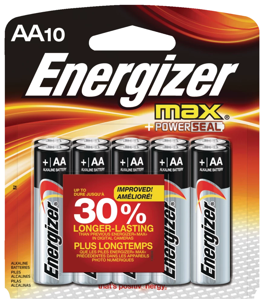 - Energizer Max Alkaline AA Batteries for use in everyday household devices