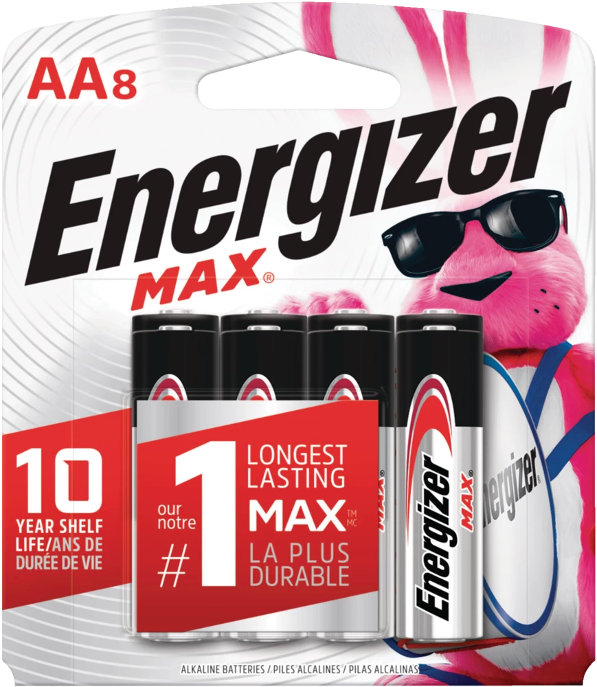 - Energizer Max Alkaline AA Batteries with Power Seal technology holds power for up to 10 years when not in use