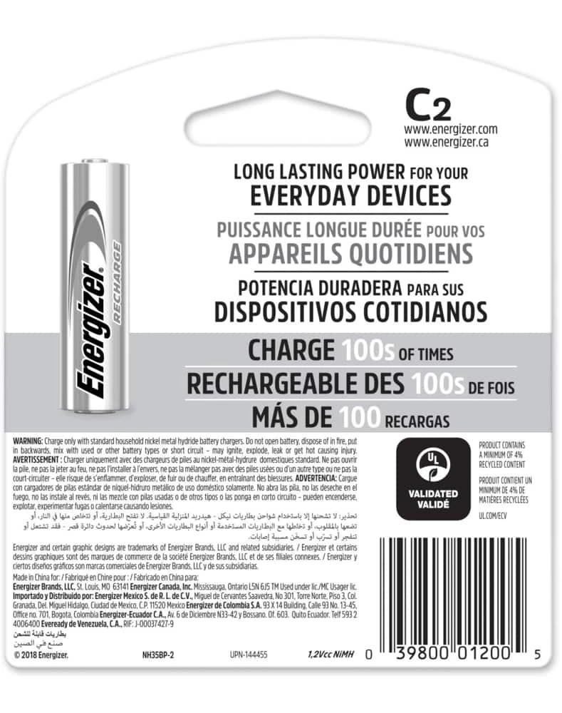 - Energizer NiMH Rechargeable C Batteries are engineered to give extended power to your power-hungry devices