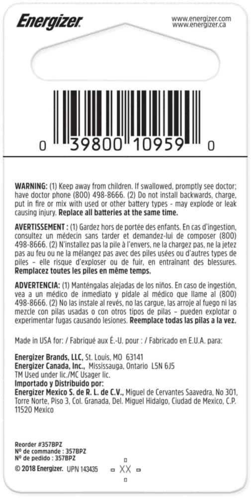 - Energizer 357/303 Silver Oxide Button Cell 1.5-Volt Battery delivers long-lasting, dependable power to your button-battery-operated devices, like medical devices, calculators, toys, and watches