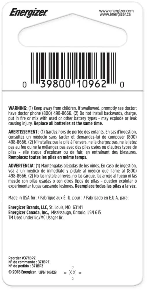 - Energizer 371 Silver Oxide Button Cell 1.5-Volt Battery delivers long-lasting, dependable power to your button-battery-operated devices, like medical devices, calculators, toys, and watches