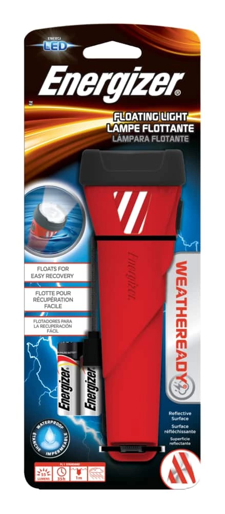 - Energizer Weather Ready Floating Flashlight is a durable water resistant flashlight providing bright, white LED light for any situation