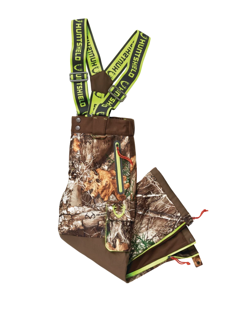 - Keep yourself dry and camouflaged with the camo Huntshield Youth Bib